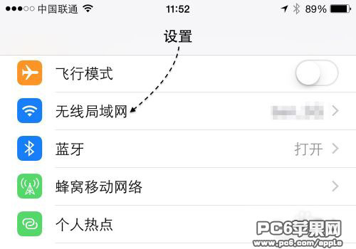 在設置列表點擊“無線局域網”一欄,如下圖所示
