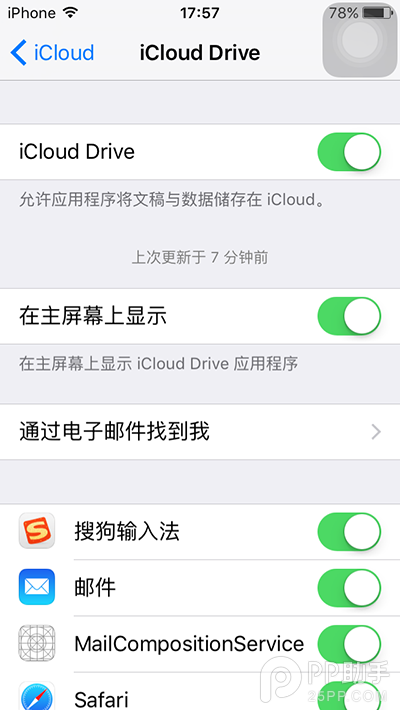 這個更新,就是 iCloud Drive 終於沖破內置功能,成為一個 App 了。先確保開發者登入 iCloud 帳號後,再到設定 App 的 iCloud→iCloud Drive 設定之中,你會看到多了一個“在主屏幕上顯示”的開關按鈕,開啟之後,就會在主界面上新增iCloud Drive的圖標。