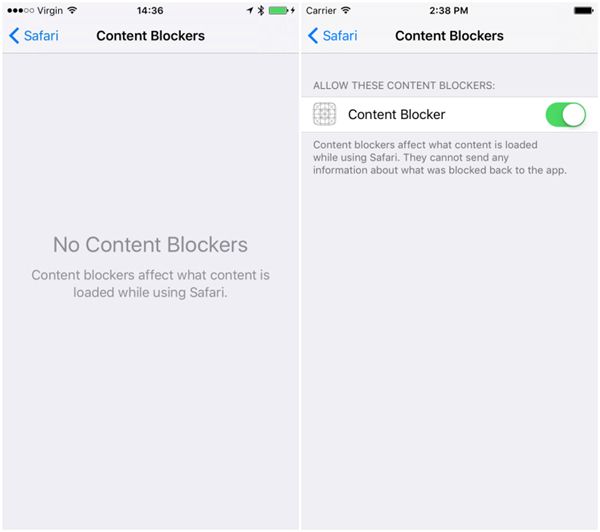 據介紹,當用戶在 iOS 9 設備上安裝了一款內置廣告屏蔽插件的應用時,在 Safari 的設置中將出現“Content Blocker”開關,允許用戶啟用和禁用。不過為了防止廣告屏蔽功能被濫用,蘋果對此類應用的審核或許會十分嚴格。