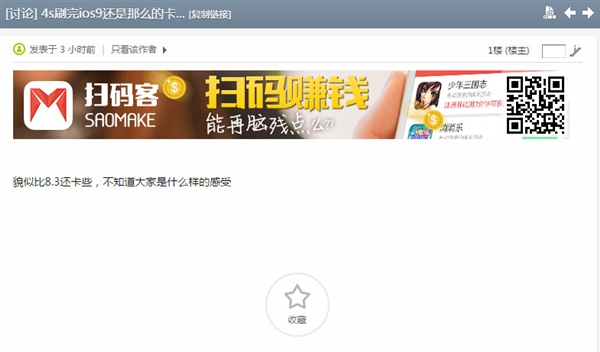 有威鋒網友在論壇中分享了自己iPhone 4S升級iOS 9的感受。升級過程倒是比較順利,沒啥壓力。但是流暢度卻沒有達到預期,兩位升級過的網友都表示,比iOS 8.3要卡。ps.其實,iOS 8.3在iPhone 4S就挺卡了。