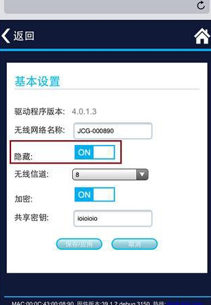 2.我們首先設置路由器隱藏WiFi信號,根據路由器手冊,或者路由器背面標貼的提示,打開浏覽器進入路由器設置頁面。進入“無線設置”-“基本設置”,打開“隱藏”開關就行了。