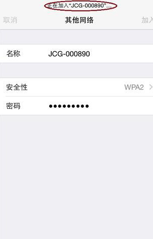 6.接下來輸入正確的WiFi無線網絡密碼,單擊“加入”,iPhone就開始嘗試連接隱藏的WiFi信號了。