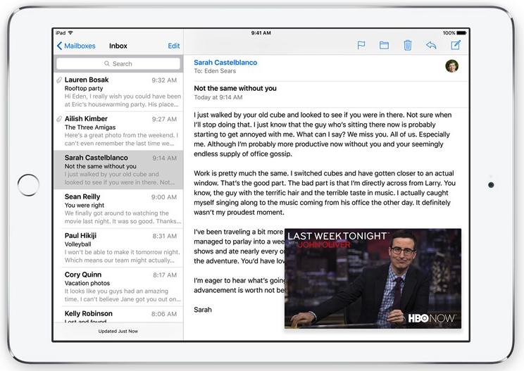 Picture in Picture 可以縮小視頻的尺寸,讓你在回郵件的同時還能看視頻節目。