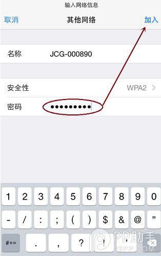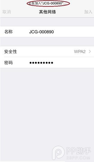 6.接下來輸入正確的WiFi無線網絡密碼,單擊“加入”,iPhone就開始嘗試連接隱藏的WiFi信號了。