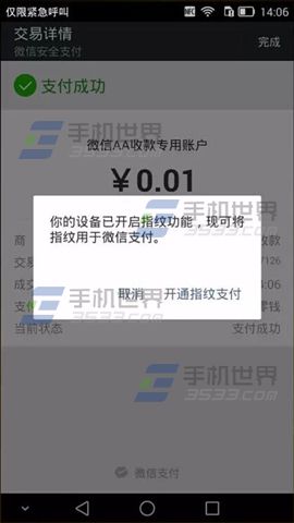 1)首先要將微信更新到6.2版本,然後按照“設置-賬戶和安全-指紋-錄入”的步驟進行錄入指紋,錄入指紋成功後就可以體驗微信支付了;每當微信支付成功時(紅包和零錢充值除外),都會自動提示開通指紋支付功能。(如下圖)