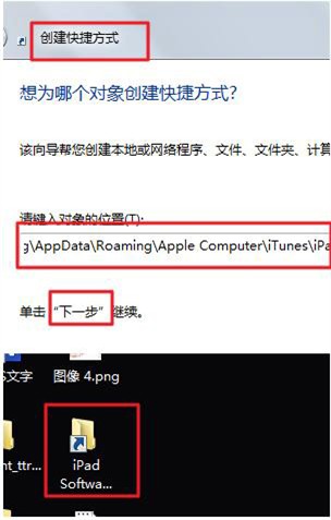 3、再就是【右鍵點擊】桌面--【新建快捷方式】,把地址復制進去,點擊【下一步】確定就建立了一個固件文件夾的快捷方式,每次下載完成後,點擊桌面的文件夾就能找到固件了。