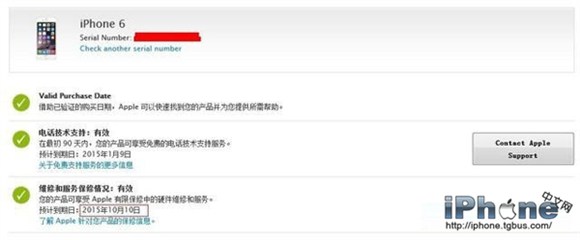 由於iPhone6是從激活日起保修一年的,從圖中,我們可以看到iPhone6 Plus保修到期時間是2015年10月10日,如果這這個日期與購入後的激活時間相差一年,就可以判斷屬於正品行貨新機。
