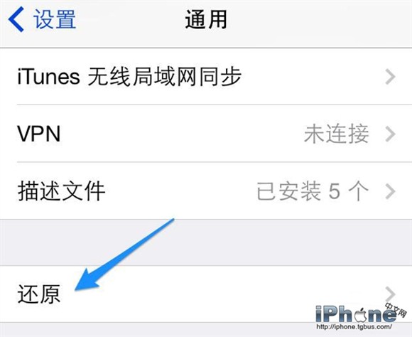 在通用列表的底部,點擊“還原”一欄。