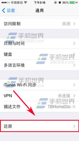 1)打開iPhone6【設置】,點擊【通用】,選擇【還原】。(如下圖)