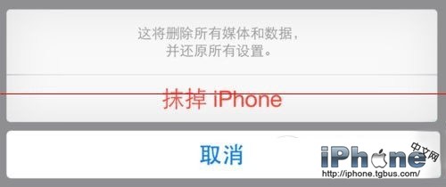 6、接下來再點擊底部彈出的“抹掉iPhone”按鈕,即可對整個iPhone進行重置了。