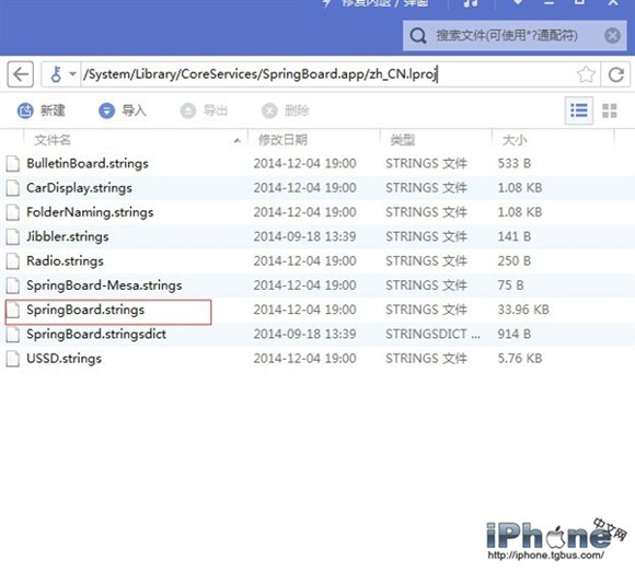 2、依次打開“System/Library/CoreServices/SpringBoard.app/zh_CN.lproj