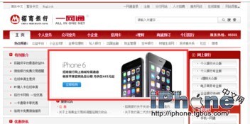 在招商銀行官網可以看到分期購買iphone6 的活動圖,點擊該活動圖