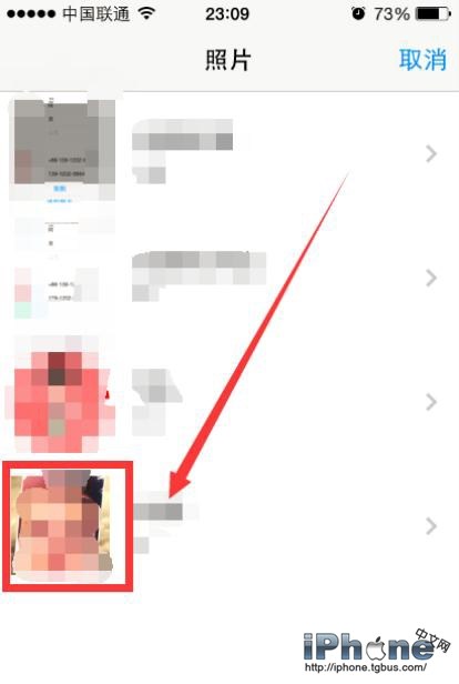 6、接著,用戶可以選擇為該聯系人拍照(該好友在身邊的時候),或是直接選擇自己手機中他的照片作為其頭像,選擇照片後點擊一下照片即可,之後系統提示對照片進行剪裁。