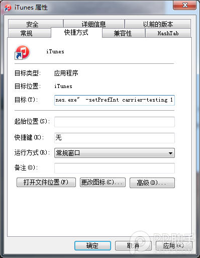比如我安裝在C盤更改後為 "C:Program FilesiTunesiTunes.exe" -setPrefInt carrier-testing 1