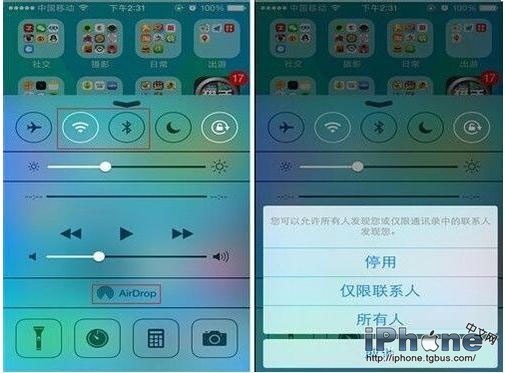 從手機底部向上滑動就可以拉出快捷鍵的功能菜單,其中諸如“Wifi、藍牙、AirDrop”等無線通訊在不使用的時候最好保持關閉狀態。