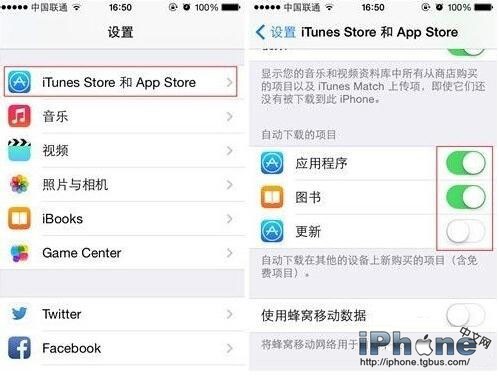 我們可以選擇性的關閉一些不經常使用的程序,或者完全關閉“後台程序刷新”功能。另外,我們還需要在“設置”——“iTunes Store和App Store”中關閉自動下載選項的更新。