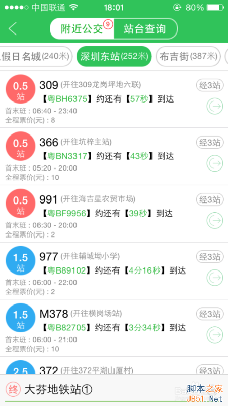 4、附近站台——主要適用於知道公交站台情況,查看站台公交信息,並系統導航到公交站台坐車