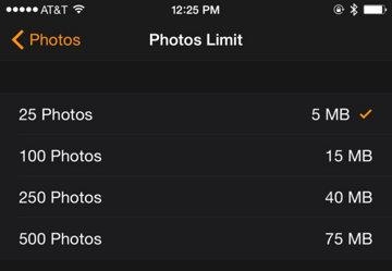 3,和同步音樂到Apple Watch上的方法一樣,用戶可以選擇同步多少張照片(和同步多大內存的照片)到手表上。選擇完畢後,點擊左上角的“返回箭頭”。