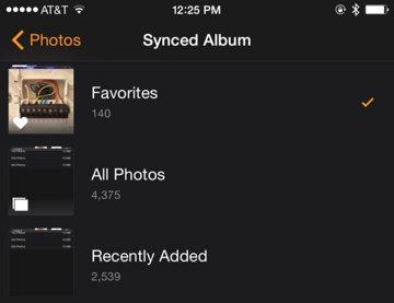 4,點擊“同步相冊”來選擇同步哪一個iPhone相冊到Apple Watch上。用戶也可以選擇“個人收藏”這一相冊,以後只要被收藏的照片都會自動同步推送到Apple Watch上。