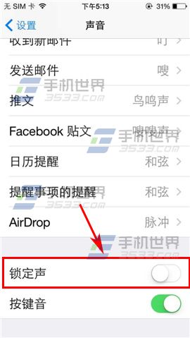 1)打開iPhone5界面點擊設置進入後再點擊【聲音】,進入後找到【鎖定聲】點擊關閉即可。(如下圖)