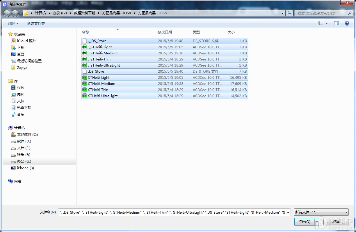 選擇字體,點擊右下角的【打開】即可將方正品尚黑字體導入到字體庫中。