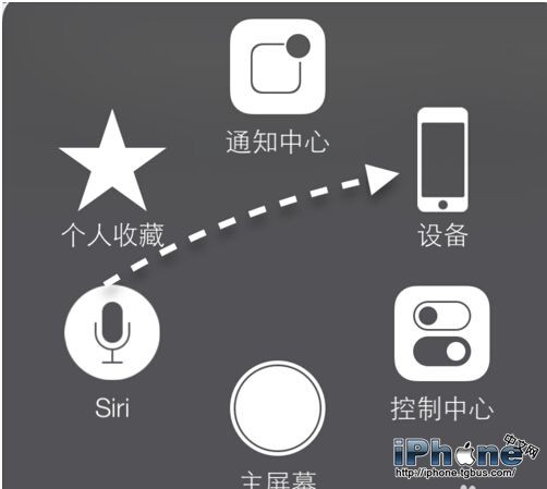 隨後我們會在屏幕上的看到一個小白點,點擊以後,會彈出功能菜單。此時請點擊“設備”圖標,如圖所示
