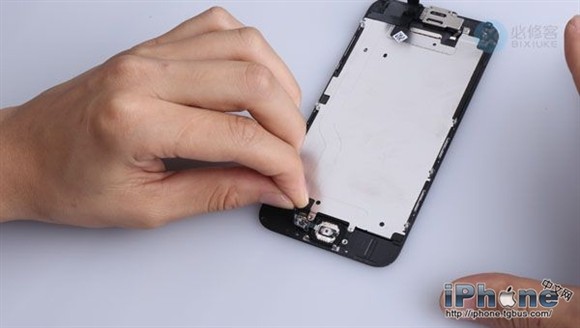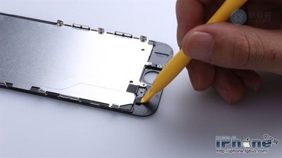 1、接下來拆卸屏幕總成上的附件,首先擰下指紋感應器保護罩的螺絲