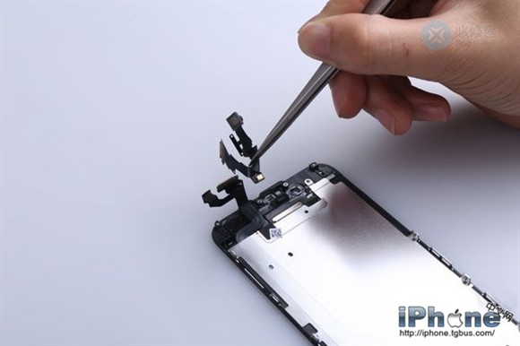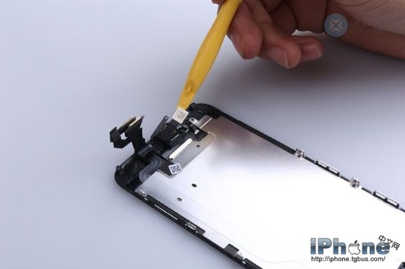 8、取下保護罩,聽筒,距離感應器,前置攝像頭、距離感應器、光線感應器都這裡