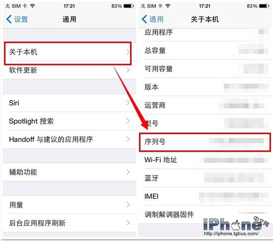 iOS設備序列號查看方法:打開設置應用-通用-關於本機-序列號