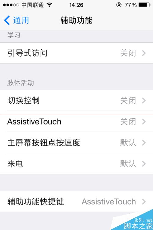 5、我們開可以使用設置裡面的另一個功能來快捷打開這個語音播報(VoiceOver)的功能可以隨時關閉和打開方法如下,設置=》通用=》輔助功能=》最下面的“輔助功能快捷鍵(VoiceOver)”