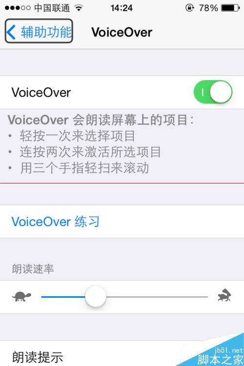 4、這就是控制這個VoiceOver的功能開關鍵我們再次用上述打開方法來打開這個選項使之關閉,這樣就可以了是不是很簡單那。