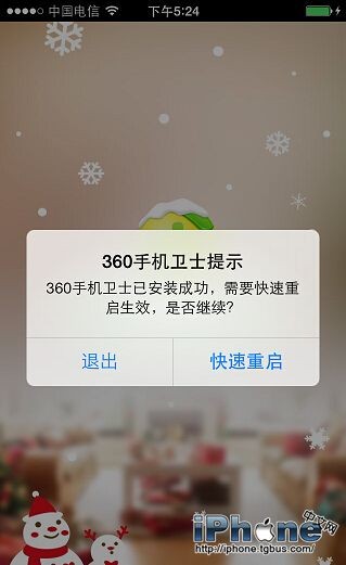 第三步:選擇“安裝”後,需要等待一小段時間。安裝完成後,打開360手機衛士專業版,這時還需要進行快速重啟: