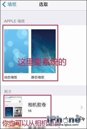 1、在桌面界面依次進入“設置”-->“牆紙”-->“選取新的牆紙”,然後選擇“動態牆紙”和“靜態牆紙”設置。其中動態壁紙可以選擇的很少,並且比較耗電,一般不推薦。一般大家可以選擇“靜態壁紙”或者從相冊中選擇自己拍照的照片或者下載的圖片作為牆紙。