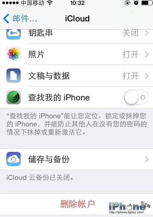 刪除電子郵件附件。通常下載電子郵件文件會占用大量空間,解決該問題的辦法就是刪除電子郵件賬戶,具體操作為:設置->郵件、通訊錄、日歷->iCloud,然後向下滾動至最後,點擊刪除賬戶。當然需要注意的一點是,在刪除之前,你要確保自己記得郵件賬戶密碼,因為還要重新添加回來。