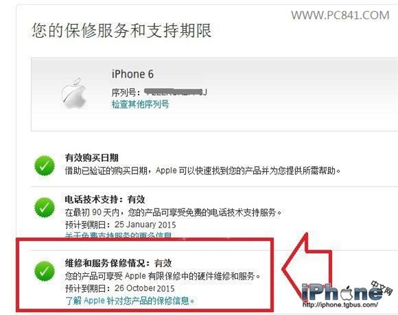 第二步、進入蘋果官網技術服務中心查詢iPhone6激活日期
