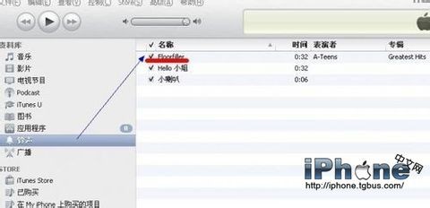 13、點擊iTunes左上邊的“鈴聲”,打開“鈴聲”頁面;