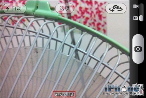 2.將iPhone放到需要虛化的背景前7~20厘米,長按屏幕然後放開,這時會看到AE/AF Lock字樣出現在屏幕下面(如果對7-10cm的距離沒概念的話,大約是半個手掌那麼長就行了)。