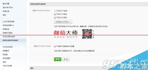 注意事項: 在第三步中,勾選 “開啟POP3服務” 和“開啟IMAP服務” 後,一定要單擊下面的 “保存”按鈕,否則不會彈出輸入手機號和驗證碼的對話框。