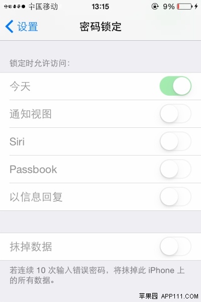例如連續第6次輸錯密碼,顯示“iPhone已停用,請1分鐘後再輸入一次”;連續第7次輸錯密碼,顯示“iPhone已停用,請5分鐘後再輸 入一次”,5分鐘內無法操作;連續第8次輸錯密碼,15分鐘內無法操作;連續第9次輸錯密碼,60分鐘內無法操作;連續第10次輸錯密碼,顯示 “iPhone已停用,連接iTunes”。