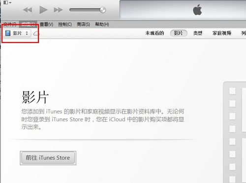 2.當iTunes成功識別出iPhone後,請點擊iTunes界面左上角欄目中的“影片”,那麼此時界面右側則會顯示iTunes音樂資料庫裡的所有已導入的電影。這裡的導入意思是將你本機上的電影文件導入進iTunes的電影資料庫裡。