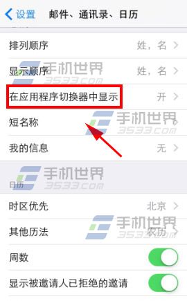 2)找到並進入【在應用程序切換器中顯示】,將【最近通話】關閉即可。