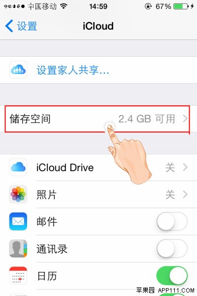 第二步,備份後,在iCloud頁面,“存儲空間”選項可以看到可用的備份空間。點擊進入“存儲空間”。
