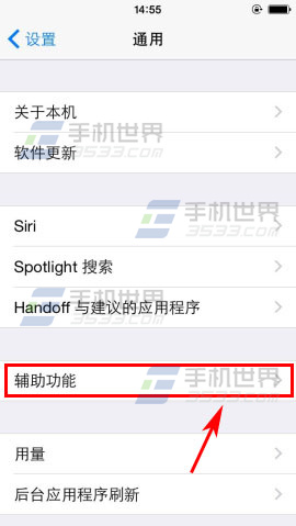 1)打開iPhone6Plus的【設置】,選擇【通用】,點擊【輔助功能】。