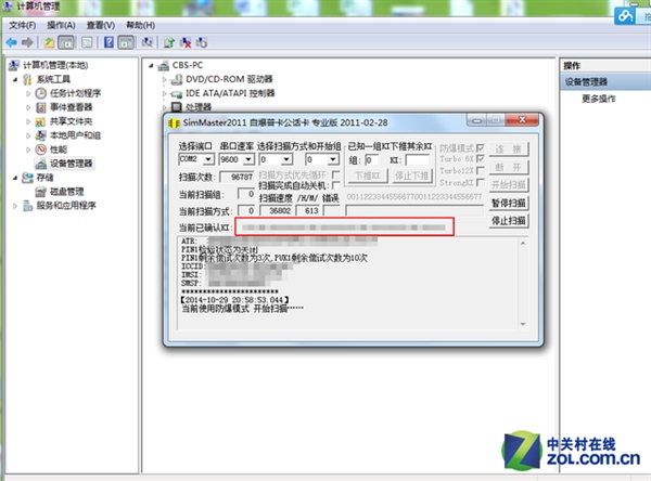 點擊“連接後”看到ICCID、IMSI、SMSP碼,勾選“防爆模式”,開始掃描