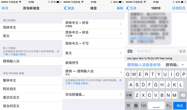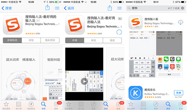 最激動人心的還是第三方輸入法!操作方式也類似Android,先下載程序,再在設置中選擇搜狗輸入法,最後在輸入時切換到搜狗輸入法。