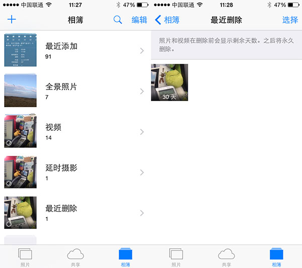 為了解決圖片誤刪無處找回,相冊中增加了一個圖像刪除的相冊,這相當於一個照片回收站,不過超過一定的時間照片會被系統自動清理,這樣才能永久刪除。