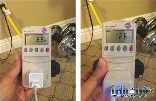 而對於之前的iPhone來說,使用12W的電源適配器和iPhone標配的5W是一樣的效率。但這種情況在新iPhone發售之後已經改變了,如果你現在使用iPad的適配器又或者新Mac上更高效率的USB接口的話,情況又會怎樣呢?或許從日本網站Mac Otakara放出的圖片中你可以找到一些端倪。