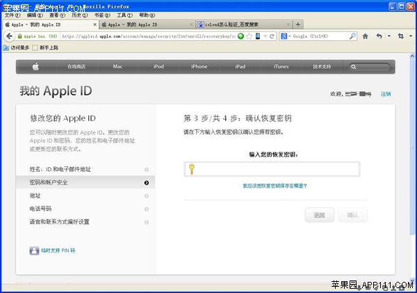 第四步,在設置兩步驗證時,需要添加手機號碼設置受信任設備、打印恢復密鑰、確認恢復密鑰等幾個步驟。