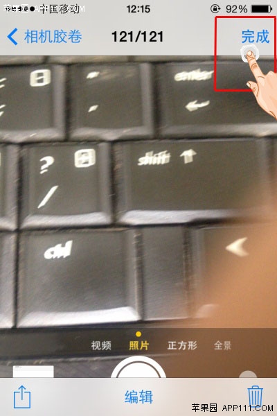 點擊照片浏覽頁面右上方的“完成”按鈕,又可以重回拍照狀態。