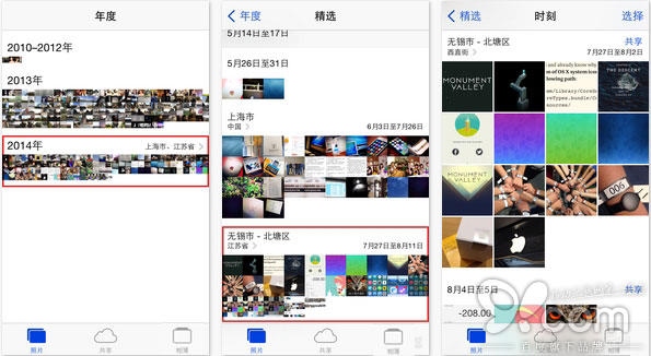 首先,你會看到此頁面將照片按照時間順序分類整合成合集了。我們此刻需要浏覽某個合集中的某個具體時刻。